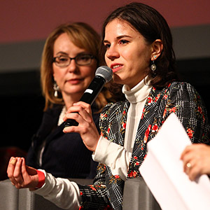 With midterm elections held just two weeks after the event, she noted it was important for students to consider the tools they had at their disposal to make their voices heard. “Voting is one way we can speak out and register our approval or disapproval of policy, and I encouraged my peers to do so on November 6,” she said. “However, we should get involved throughout the year as well—volunteering, working at a nonprofit, or simply talking to others in the communities we live and work among. Like Gabrielle Giffords and Mark Kelly, everyone has a story. One way we can participate is by continuing—or starting—to listen.”