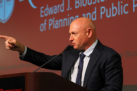 On October 24, 2018, the Bloustein School hosted the annual Governor J. Florio Distinguished Visiting Scholar in Public Policy Lecture, “Making informed choices for the public good: Advancing civil dialogue on gun policy,” with special guests former Congresswoman Gabrielle Giffords, the victim of a shooting in 2011 and her husband, Navy combat veteran and retired NASA astronaut Captain Mark Kelly.