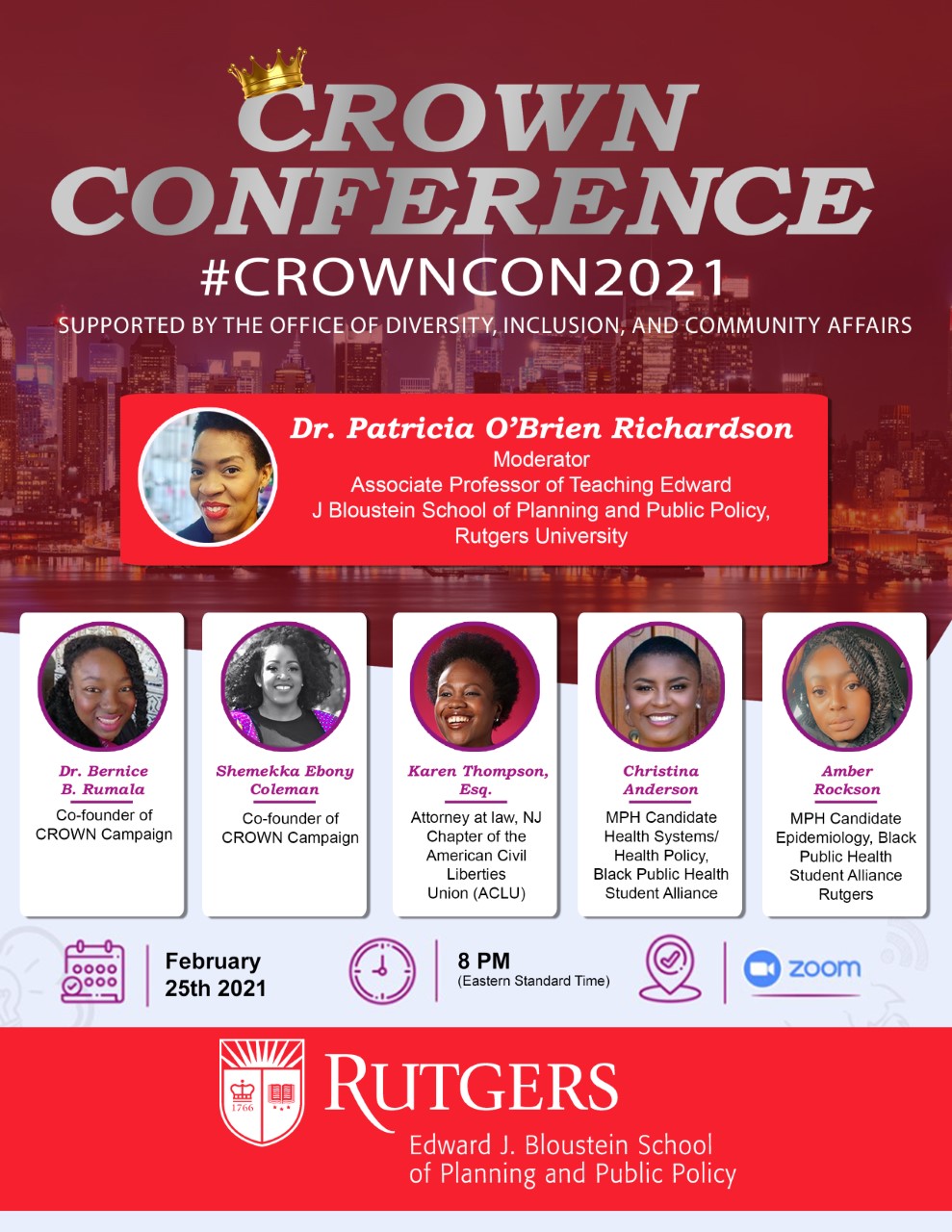 Much of Dr. O’Brien-Richardson professional and academic work explores the social, cultural, and structural factors that influence the health of women and girls of African descent, such as hair. In between her personal, teaching, and mentorship roles, she is organizing and moderating the second annual CROWN Conference to be held on Feb. 25. The event will further the discussion and education of last year’s inaugural conference, “Can Public Policy End Hair Discrimination?“