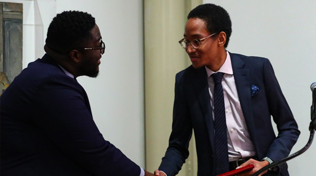 Photo: Brandon Mckoy MCRP ’13 (left) and Interim Dean Stuart Shapiro