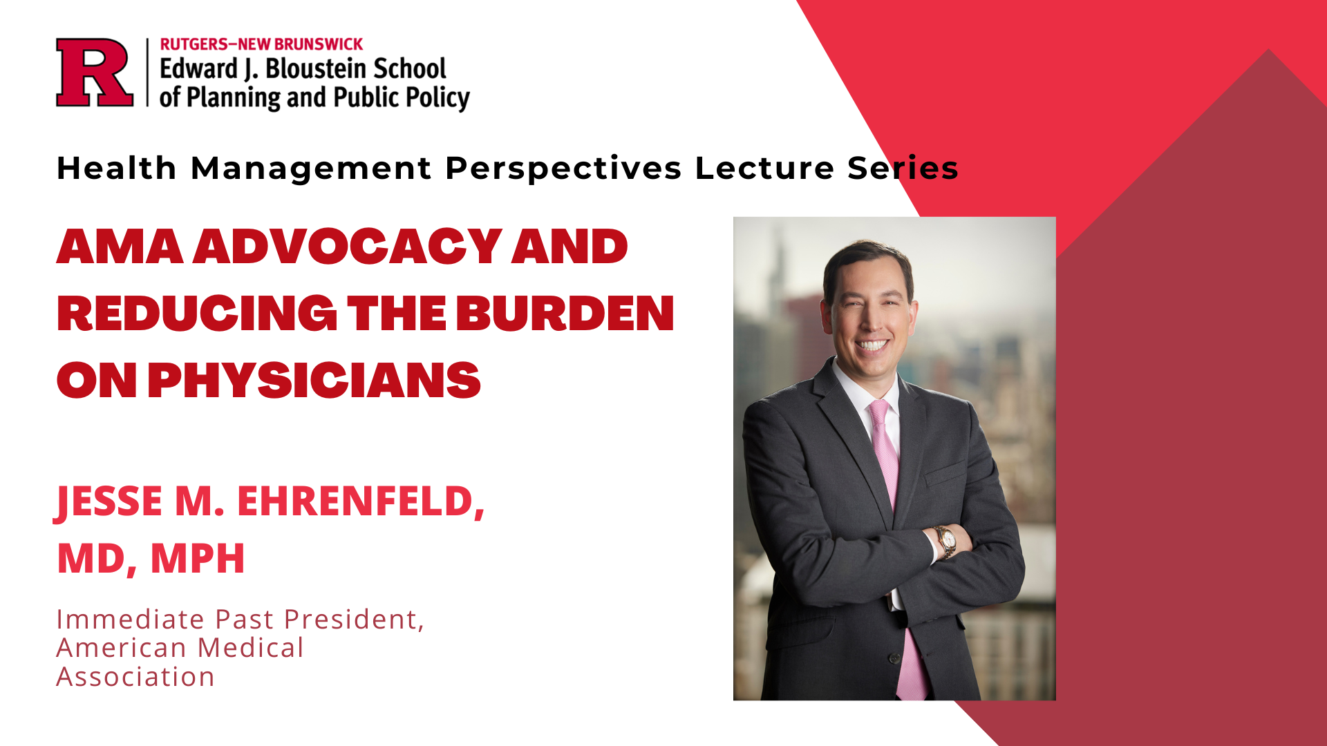 All are invited to the inaugural event of the Rutgers Health Management Perspectives Lecture Series at the Bloustein School, created to bring leading voices in health management and policy to engage with our Rutgers community. This event will be presented by Jesse M. Ehrenfeld, MD, MPH