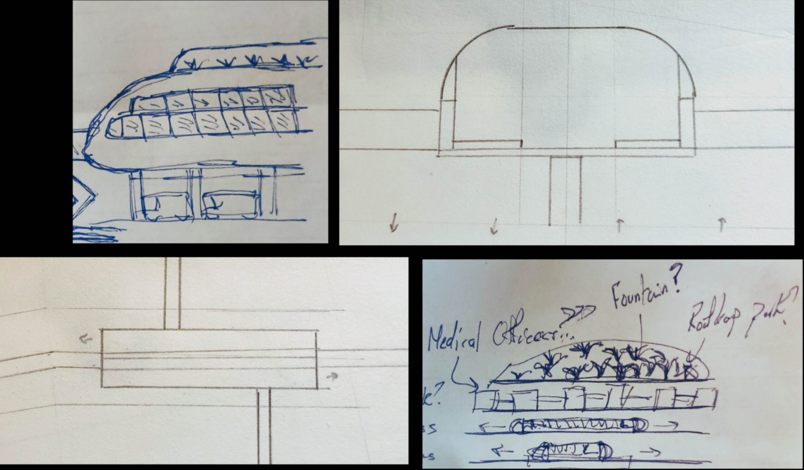 “This was when I realized that this project could be more than a bus line and station,” said Markian. “It was a call to provide sick urban residents, who rely on public transit to get to and from medical appointments, with a more integrated, reliable, and comfortable transit experience. After more thought, I realized that other groups would benefit from this type of transit integration as well, as healthcare workers could use the system to commute and hospitals could see increased patient flow.” He elevated the station and added healthcare offices above the station with bridges connecting to surrounding medical buildings.