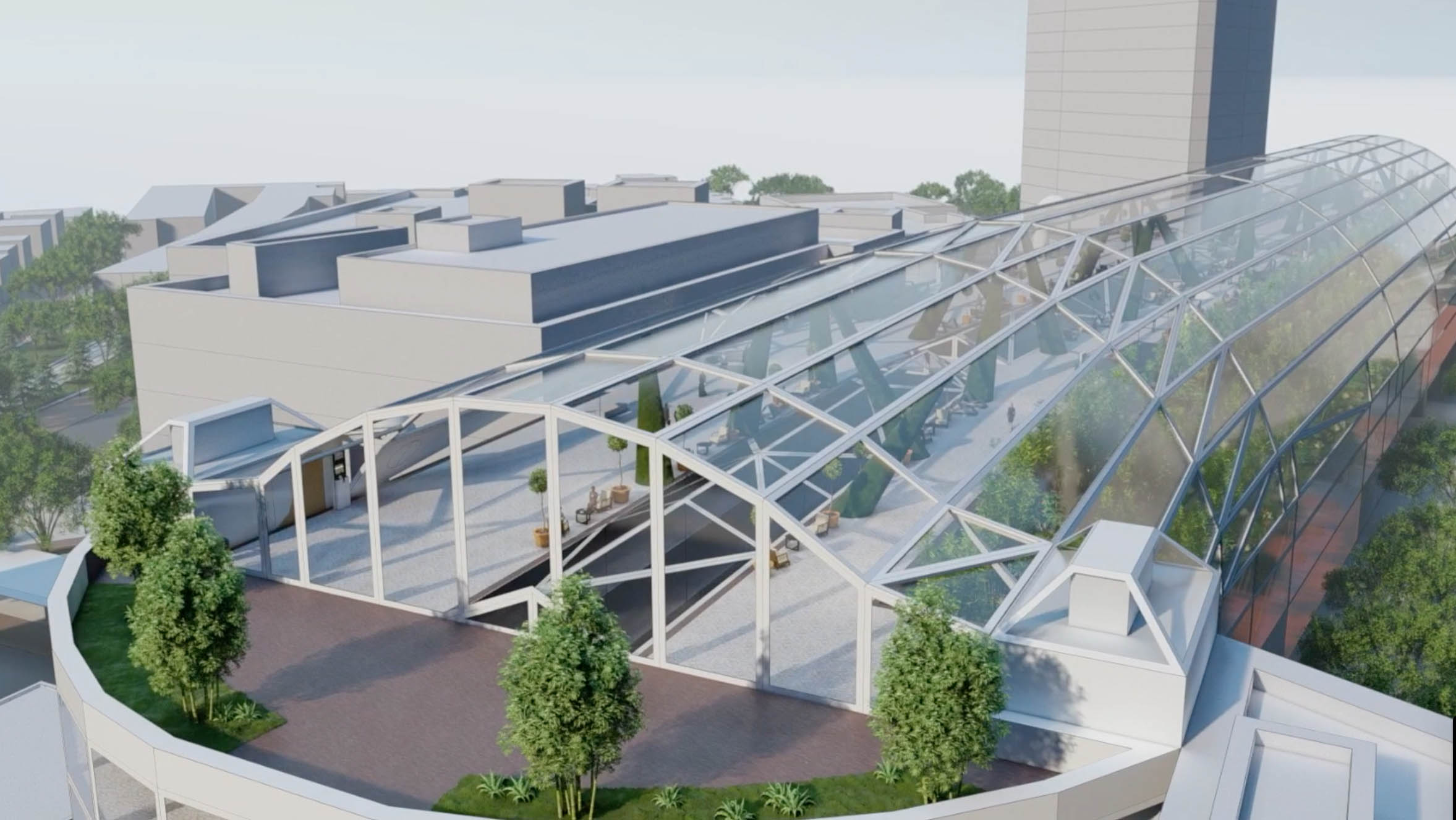 It was important that the doctor’s offices and clinic spaces have access to natural light and green foliage, so he drew some of the station’s design from Kenmore Square, an existing bus station in Boston. The arching glass of the Kenmore Square allows for passengers to view the sky from under the station and provides warming sunlight during the cold Boston winters. “It was also a bit of nostalgia, as it was where I got on my first-ever city bus as a college freshman.”