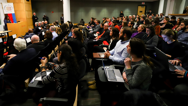 Governor Florio was also in attendance, and both Murphy and Professor Carl Van Horn, who introduced the lecture, praised the former governor’s nearly 50-year history of public service in the statehouse, as the governor, and at the Bloustein School. Professor Van Horn praised Governor Florio’s commitment to “evidence-based policy solutions to help those in need,” which Governor Murphy echoed.