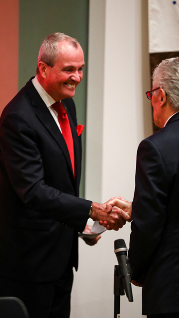 “It’s a Wednesday evening in the middle of February,” said Governor Phil Murphy knowingly, looking out at his audience, some of whom seemed to guess what was coming next. “The Scarlet Knights’ tipoff against Michigan in less than two hours, and yet you’re showing such devotion by being here tonight.” Governor Murphy grinned, and the audience laughed along. “But if you think I’m going to keep you here past tipoff time, don’t worry–I’m going to the game too.”