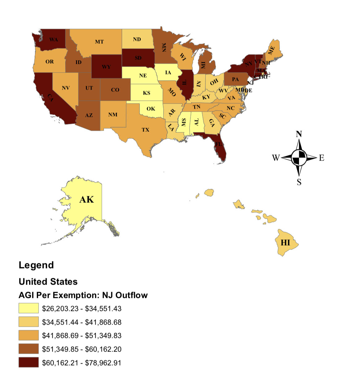 Figure 1: Average Adjusted Gross Income per New Jersey Out-Migrant by State, 2018-2019