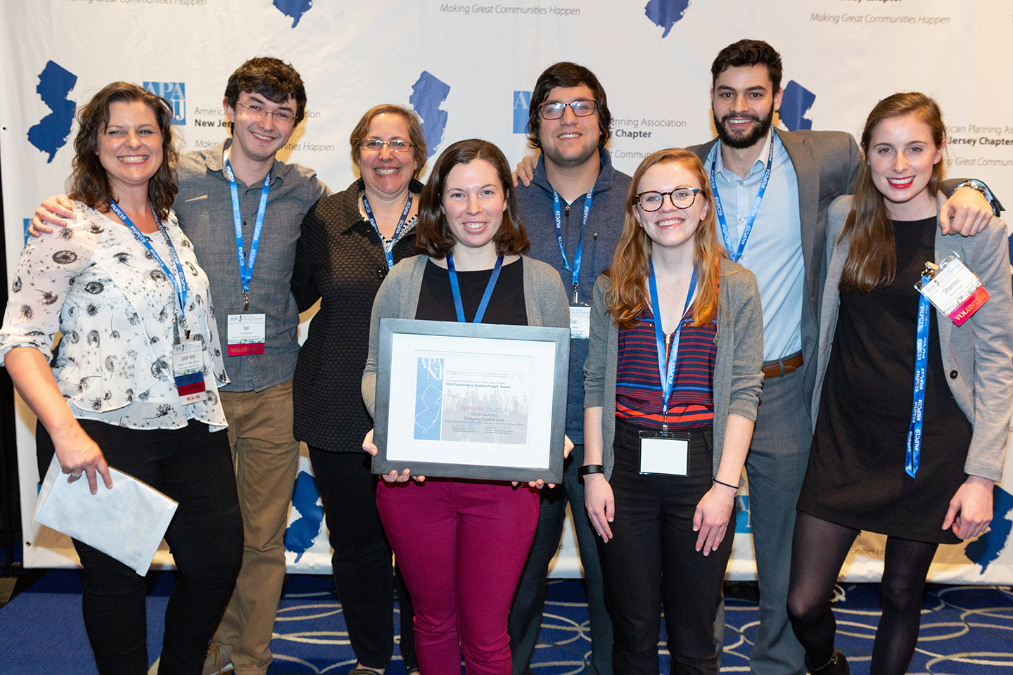 The fall 2018 Bloustein School graduate planning studio, “Reimagining Bloomfield Streets: Planning for Health, Equity, and Safety through Walking, Biking, and Transit around the Watsessing Avenue Station Neighborhood,” was the recipient of the 2019 American Planning Association-New Jersey chapter Outstanding Student Project Award. This award is presented to outstanding class projects or papers by a student or group of students that contribute to advances in the field of planning.