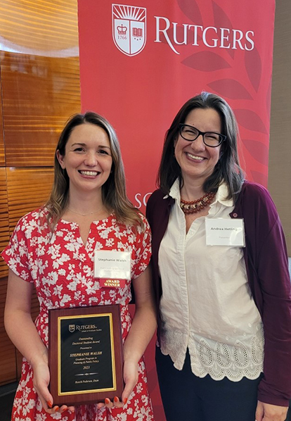 Stephanie Walsh, MPP ’16, Ph.D. ’23 is one of four Ph.D. students awarded the Outstanding Doctoral Student Award by the Rutgers School of Graduate Studies for her dissertation, “Analyzing and Improving Social Safety Net Access.”